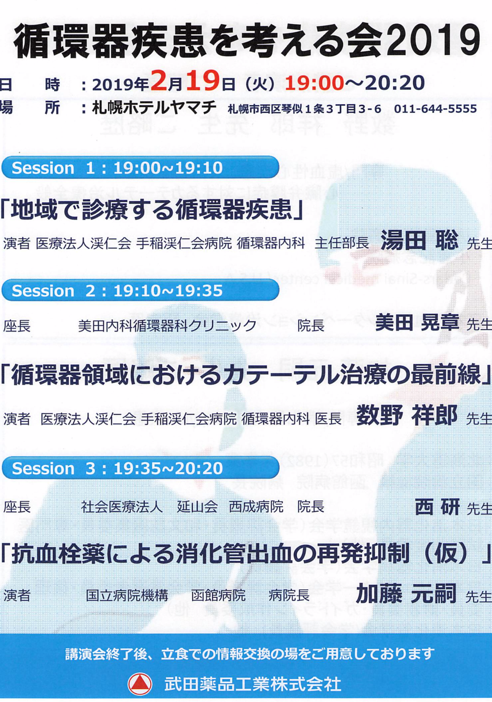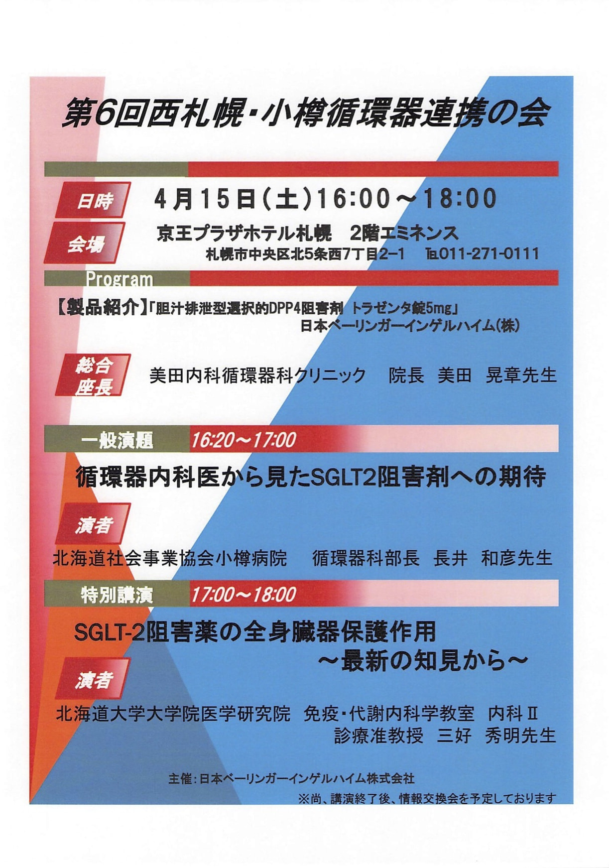 講演2では手稲渓仁会病院循環器内科の川初寛道先生より現状の循環器疾患の診断治療について詳細な報告であった。心不全、冠動脈インターベンション・TAVI・不整脈アブレーションなど最先端のお話を聞くことができた。